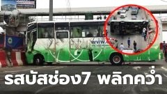 สุดช็อก! รถบัสช่อง 7 เกิดอุบัติเหตุพลิกคว่ำ สภาพพังยับทั้งคัน