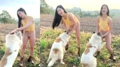 สาวใส่กางเกงแบบนี้ เล่นกับน้องหมา เห็นแว๊บแรกตกใจมาก!!