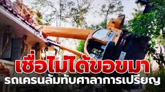 ช็อก!! รถเครนล้มทับศาลาการเปรียญ เชื่อไม่ได้ขอขมา ก่อนเปลี่ยนปล่องเมรุ
