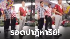 รอดปาฏิหาริย์!! ป้ายงานล้มทับ คนพูดเปิดงานวันเด็ก หวิดดับคาเวที