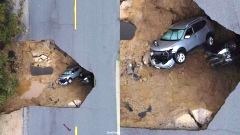 น่ากลัวมาก! ฝนตกหนักทำถนนมันยุบ รถขับมาตอนกลางคืน ตกลงไปทั้งคัน