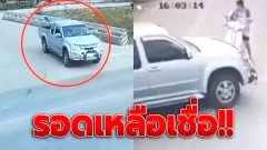 รอดเหลือเชื่อ!! มอไซค์หยุดรอข้ามทางแยก หวิดดับ หลังกระบะชนกัน พุ่งเข้าใส่