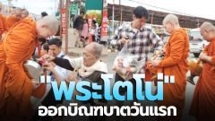 เผยภาพชาวบ้าน แห่ใส่บาตร "พระโตโน่" ออกบิณฑบาตวันแรก