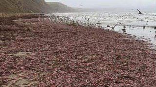 ตะลึง! "ปลากระจู๋" นับพันตัวมาเกยฝั่ง ที่ชายหาดในรัฐแคลิฟอร์เนีย