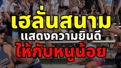 ทุกคนพร้อมใจกันส่งเสียงเชียร์ให้กับสาวน้อยคนนี้