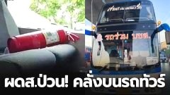 อย่างป่วนกลางรถทัวร์! "หนุ่มคลั่ง" สูบบุหรี่ในรถร่วม บขส. เอาถังดับเพลิงทุบกระจก ก่อนโดดลงถนนพระราม 2