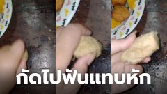 แข็งเหมือนหิน! สาวเซ็ง "ซื้อลูกชิ้นปลาทอดมากิน" กัดไปฟันแทบหัก เอาไปทุบกับโต๊ะยังไม่สะเทือน