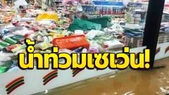 แทบช็อก!! เซเว่นลอยน้ำไปแล้ว สินค้ากระจัดกระจาย หลังน้ำท่วมหนัก เกลื่อนพื้นเลย