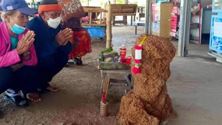 ชาวบ้านแห่ไหว้! ขอโชคกับ "จอมปลวก" รูปร่างคล้าย "ถ้วยบอลโลก" หลังโผล่หน้าร้านของชำ จ.ชัยภูมิ