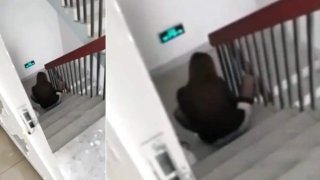 หนุ่มช็อก!! หลังเห็นหญิงนั่งเบ็ด ที่บันไดหนีไฟ
