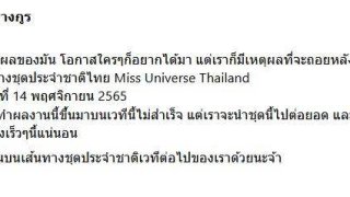 เปลี่ยนคนทำชุดประจำชาติ! เพจ "ห้องเสื้อพลางกูร" โพสต์ขอโทษ ที่ทำผลงานขึ้นบนเวที "Miss Universe 2022" ไม่สำเร็จ