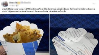 ช็อกอยู่นะ! ลูกค้าสาวซื้อขนมเครปมากิน กัดไปเกือบครึ่งชิ้น เพิ่งเห็นกระดาษห่อ คล้ายทำมาจากกล่อง ATK