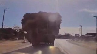 สุดหวาดเสียว! วินาทีของร่วงจากหลัง "รถบรรทุก" ใส่ "หน้ารถเก๋ง" กระจกแตกพังยับ