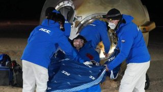 จนท. เร่งเข้าหามเปลช่วย "ทีมสำรวจอวกาศชาวจีน" ที่เพิ่งกลับมาถึงโลก หลังจากอยู่นอกโลกนานถึง 6 เดือน