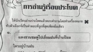โลกออนไลน์แชร์ภาพ! "การบ้านอ่านจับใจความประโยค" แค่ข้อแรกก็งงแล้ว "แดงชวนชมพู่ ไปเยี่ยมฝน ที่บ้านป้อม แล้วใครอยู่บ้านฝน?"