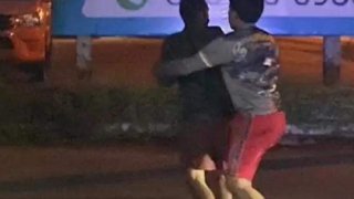ฮาสนั่น! "จังหวะซิทคอม" วินาที "ตำรวจ-พลเมืองดี" รุมชาร์จตัวชายกลางสะพาน แต่กับดึงขาผิดตัวไรเดอร์ลั่น "ขาผมๆ"