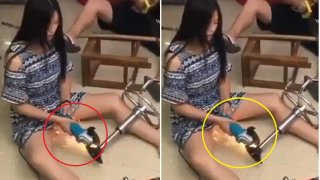 ชาวเน็ตอึ้ง "สาวใช้เครื่องเจียร์ ไฟแล๊บเข้าเป้าจังๆ"