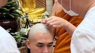 หนุ่ม หน่อง ธนา เข้าพิธีอุปสมบทแล้ว ที่ วัดปทุมวนารามราชวรวิหาร ได้ฉายาธรรม โสภณธโน