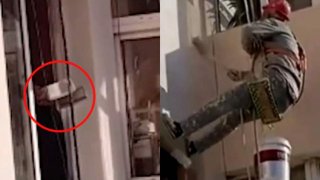 ลุงใจทรามคว้ามีดขู่ตัดเชือกโรยตัวของช่างทาสี
