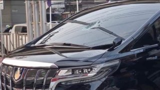 เฉียดตาย! หนุ่มขับรถมาดีๆ ถูกเหล็กก่อสร้าง "โครงการรถไฟฟ้าสีชมพู" ตกใส่หน้ารถตู้หรูพังยับ