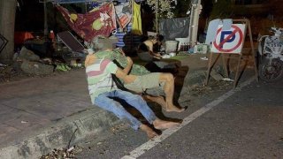 "คนเร่ร่อน" เมาถือไม้ตีหัวกันเจ็บ ตร.บอกจะพาไปโรงพัก กับโชว์หอมแก้ม-กอด "บอกดีกันแล้ว"