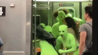 กลุ่มคนชุดบอดี้สูทตัวเขียว! รุมเข้าทำทำร้าย "หญิงสาว" กลางรถไฟใต้ดินนิวยอร์ก