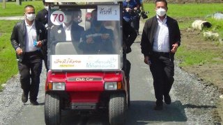 "บิ๊กป้อม" ลงพื้นที่ "ขึ้นรถกอล์ฟไปดูงาน" ทหารคนสนิทใส่สูทวิ่งตาม เกือบ 2 กม.