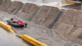 "หนุ่มเม็กซิโก" ล่องแก่งสุดพิเรนท์ ในร่องถนน ก่อนถูกดูดลงท่อระบายน้ำหายวับไปทันที
