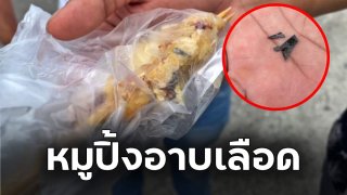 หนุ่มเตือนภัย!! ซื้อหมูปิ้งกิน เคี้ยวเจอเศษใบมีดคัตเตอร์ บาดปากเลือดอาบ