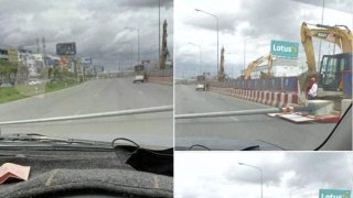 ขับไปเสียวไป! เสาไฟฟ้าโค่นล้มขวาง ถนนพระราม 2 กลางถนน