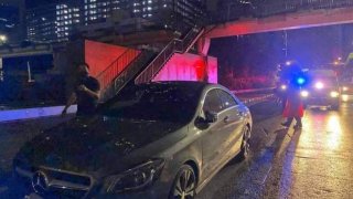 ร่วงอีกแล้ว!! ท่อเหล็กร้อยสายไฟ ใต้สะพานลอย ร่วงใส่รถยนต์
