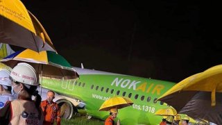 กู้สำเร็จแล้ว!! เครื่องบินนกแอร์ ไถลหลุดรันเวย์ ที่สนามบินแม่ฟ้าหลวง