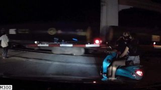 จะรีบไปไหน! กล้องหน้ารถจับภาพชัด จยย.พยายามจะฝ่าทางกั้น ขณะรถไฟวิ่งผ่าน