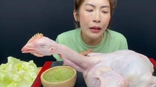 อย่าหาทำ!! สาวไทย "โชว์กินไก่ดิบ" เพื่อยอดวิว เพื่อความปัง