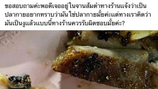 สาวแทบอ้วก!! เจอหนังงูในส้มตำ ร้านโต้กลับ บอก "มันคือปลากราย"