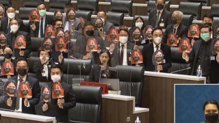 "ส.ส.ก้าวไกล" ชูรูป "ผักบุ้ง-ใบปอ" กลางสภา "ไม่ควรมีใครต้องถูกคุมขัง"