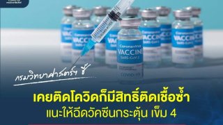 กรมวิทยาศาสตร์ฯ ชี้ เคยติดโควิดก็มีสิทธิ์ติดเชื้อซ้ำ แนะให้ฉีดวัคซีนกระตุ้น เข็ม 4