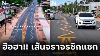 ฮือฮา!! เส้นจราจรซิกแซกแปลกใหม่ ทางหลวงศรีสะเกษแจงใช้เพื่อลดอุบัติเหตุอยู่ในช่วงทดลอง