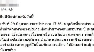 หนุ่มเกือบสู่ขิต! ขับ BM ขึ้นทางด่วน แผงโซลาร์เซลล์ ลอยมาจากฟ้า กระจกแตกยับ