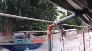น้ำเต็มหน้า!! เรือโดยสาร ขับสวนทางกัน ซัดน้ำเน่าเข้าเรือเต็มๆ