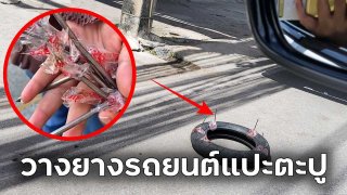 โหดเกินไปมั้ย!! วางยางรถยนต์แปะตะปูยาว 5 นิ้ว กันคนอื่นมาจอดรถ