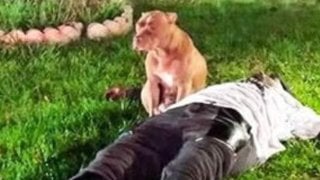 สุนัขนั่งเฝ้าเจ้าของที่นอนบาดเจ็บ