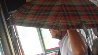 ดราม่า! "คนขับรถเมล์" กางร่มขณะขับ แจ้งเพราะหลังคารถรั่ว