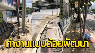 คุณภาพชีวิต!! ก่อสร้างฟุตบาทแบบนี้ ทำงานแบบด้อยพัฒนา อันตรายมาก