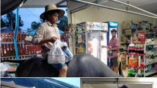 ไอเดียแจ่ม!! หนุ่มโคราช ประชดน้ำมันเเพง ขี่ควายไปซื้อของซะเลย