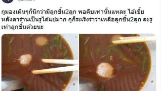 หนุ่มโดนสับขาหลอก นึกว่าได้ลูกชิ้น 2 ลูก พอจะคีบขึ้นมาเท่านั้นแหละ