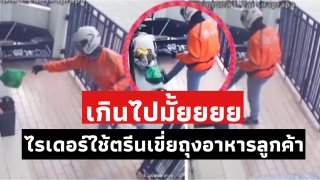 ไรเดอร์ตีนเขี่ย! วิจารณ์ยับโยนกล่องข้าว แถมใช้เท้าเขี่ยอาหารลูกค้า กล้องจับได้เต็มๆตา