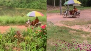 ชาวเน็ตงง!หลวงพ่อนั่งข้างซาเล็งไปบิณฑบาตร แต่คนขับกลับไม่มี