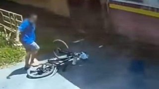 อย่าหาทำ หนุ่มปั่นจักรยานมุดลอดไม้กั้นทางรถไฟ หวิดถูกทับ อีกนิดเดียว !