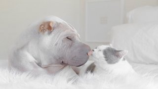 ภาพถ่ายมหัศจรรย์ของ Shar Pei และเพื่อนแมวของเขา